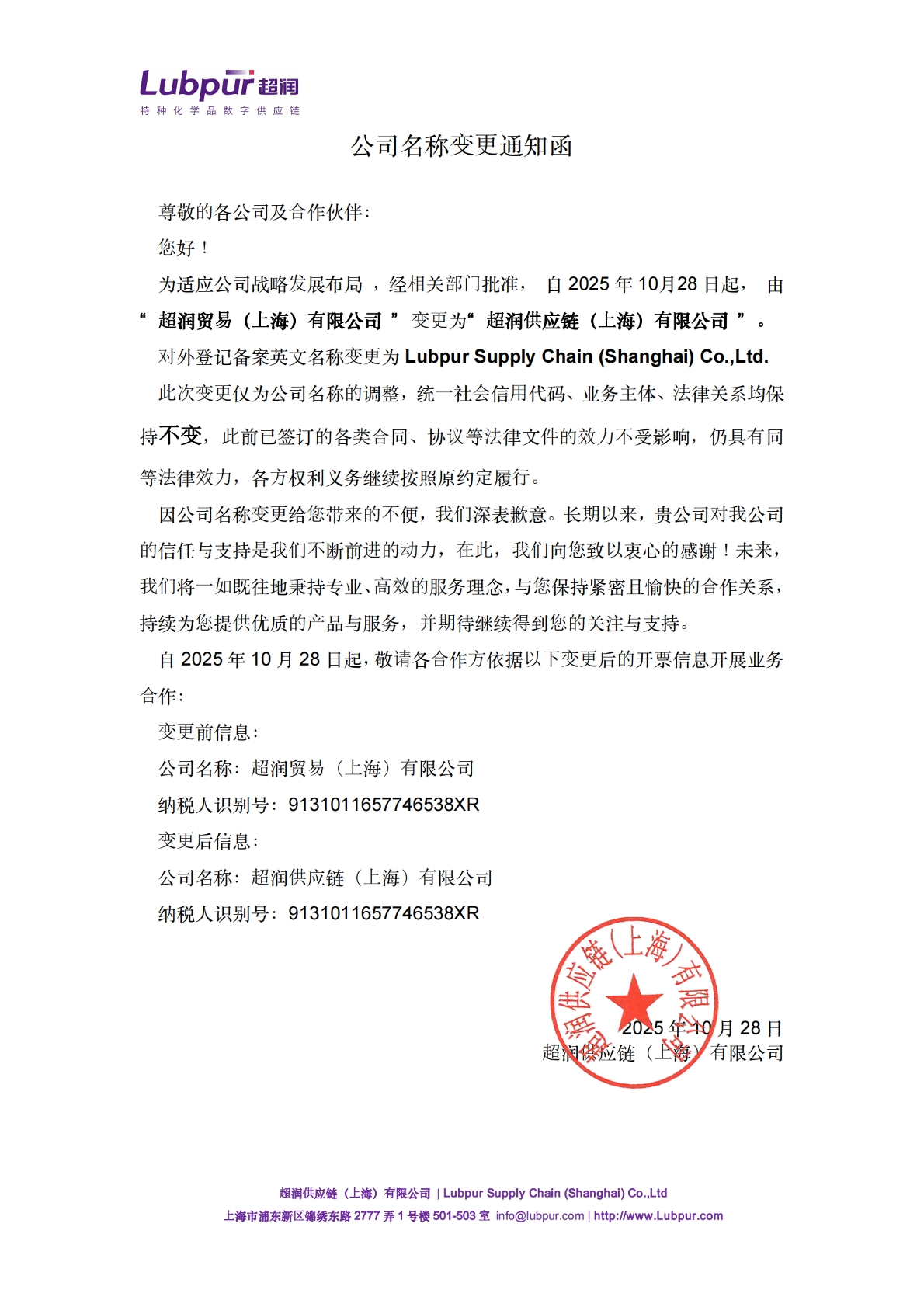 恭贺:新品牌「Lubpur超润」2021年1月1日正式启用